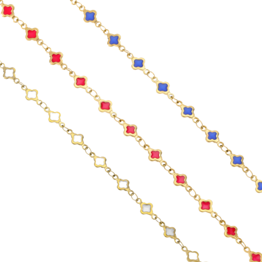 Elevate your style with our Lucky Charm Bracelet. This charming bracelet features a delicate clover chain. adding a sweet touch to any outfit. Made for good fortune. this bracelet is the perfect accessory to brighten your day with its cute and chic design.