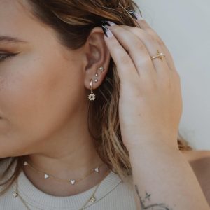Add some sunshine to your outfit with these playful Sunburst Earrings. The dangling sun charm earrings will add a touch of whimsy and fun to any look. Perfect for a day at the beach or a picnic in the park. Embrace the sunny vibes!